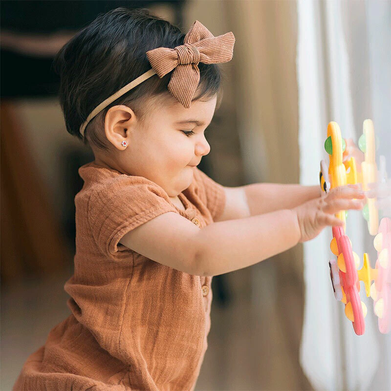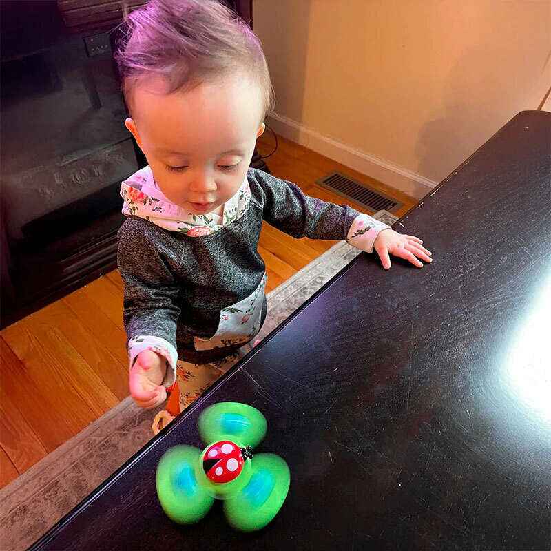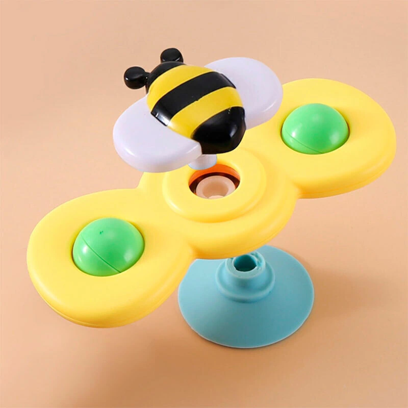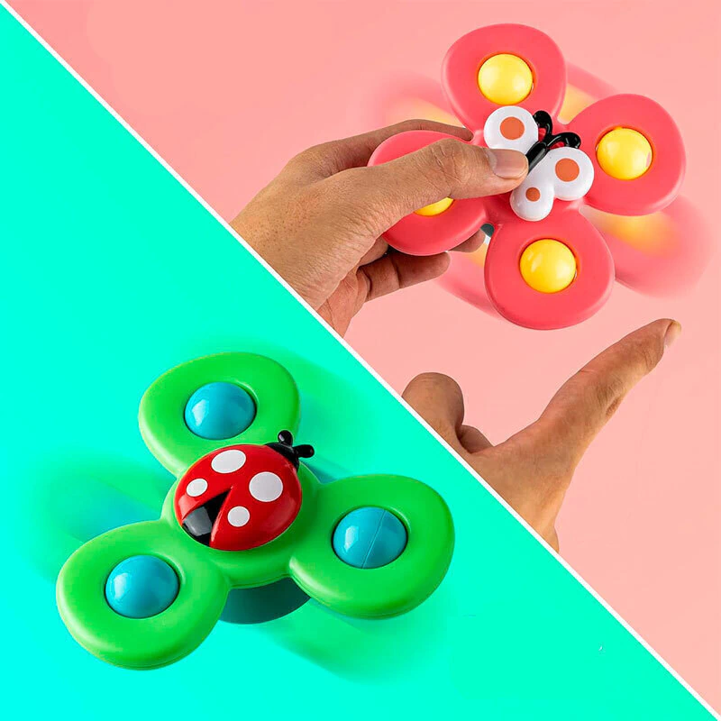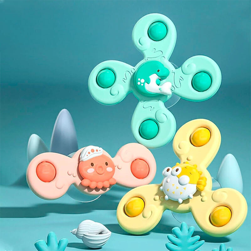 Set de 3 juguetes giratorios con ventosa que estimula los sentidos del tacto, visual y auditivo del peque.
