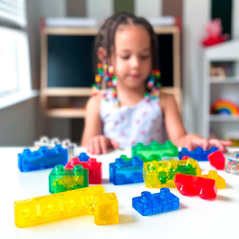 Los Bloques Gelatinosos combinan los dos juegos favoritos de los más pequeños, la diversión de armar y construir, con la magia de los juguetes sensoriales.