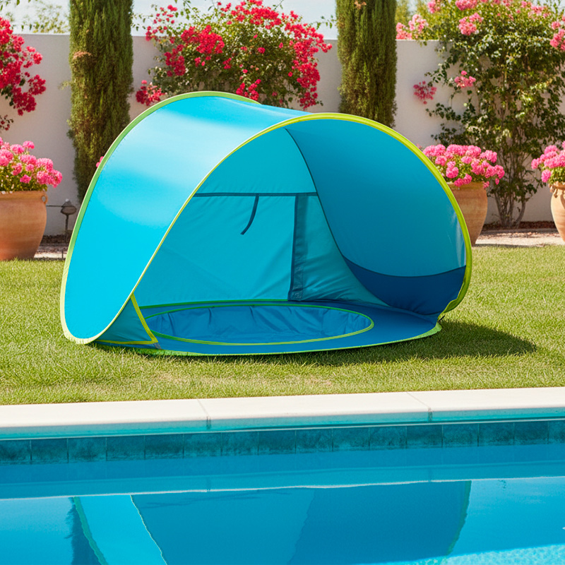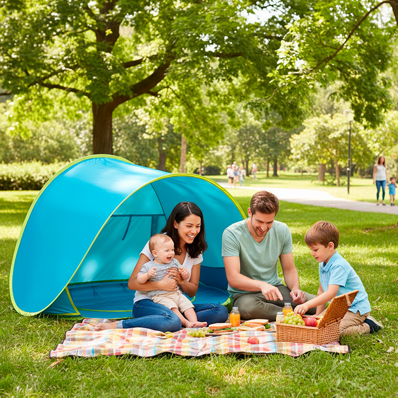 Crea un refugio fresco y ventilado para proteger la piel sensible de tu bebé del sol, el viento y la arena.