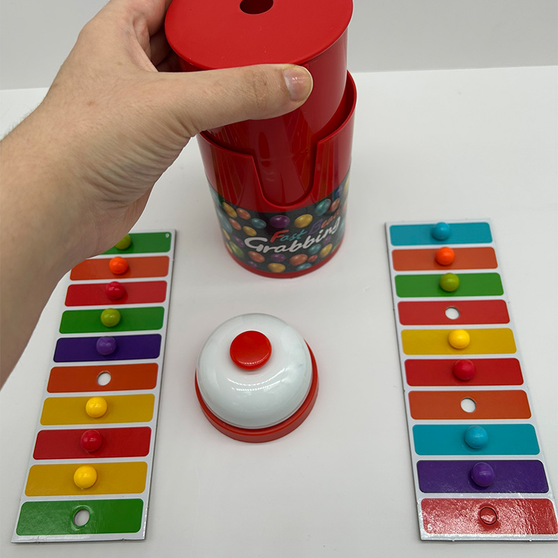 ‣ Incluye: 1 contenedor, 1 campana, 90 pelotitas de 6 colores, 6 tableros de colores.