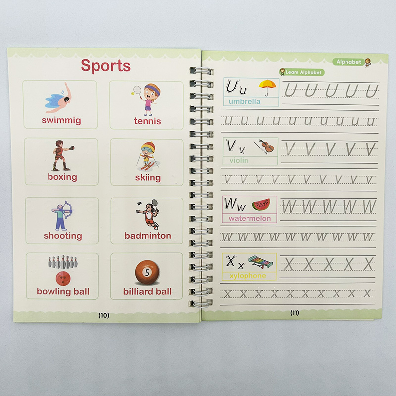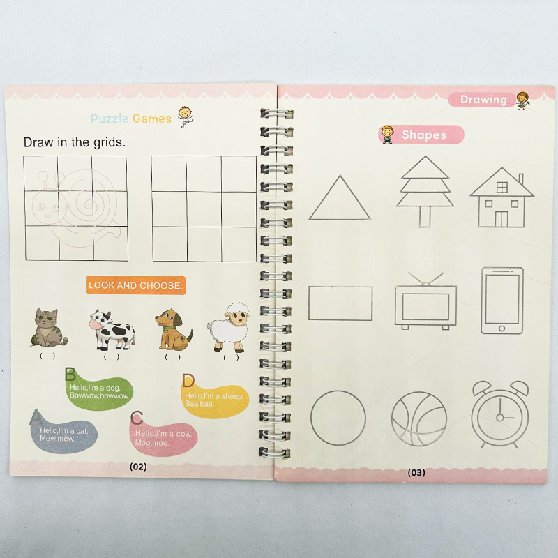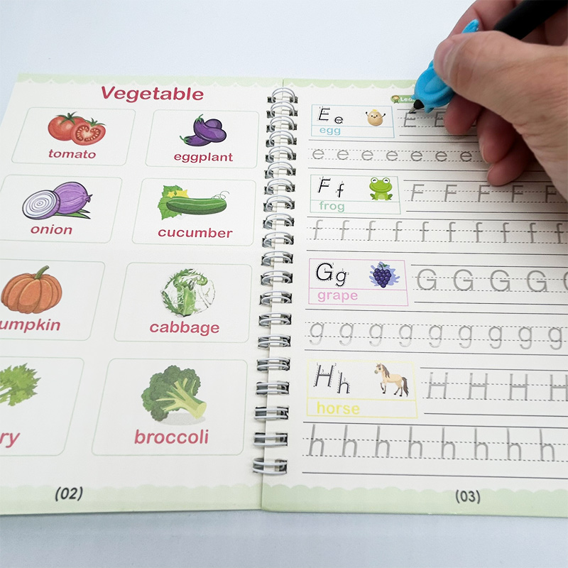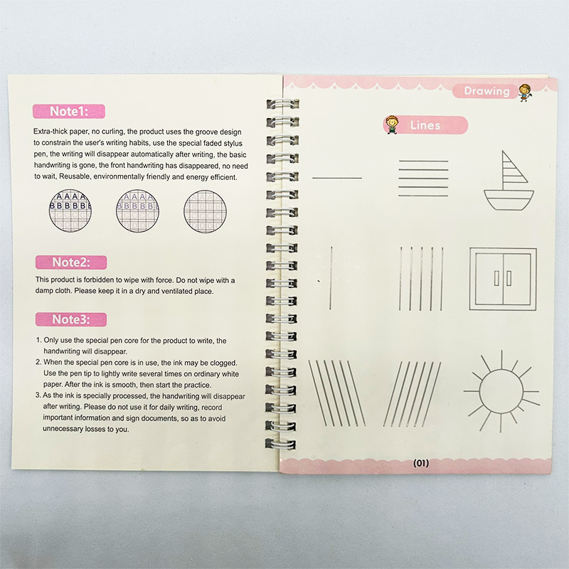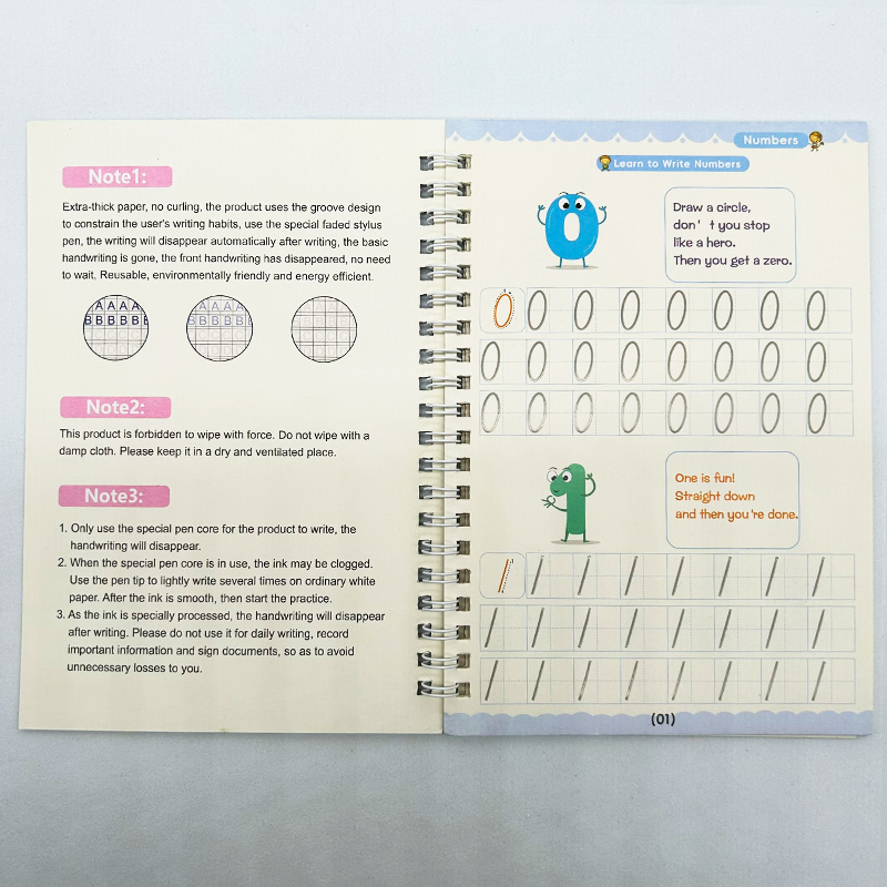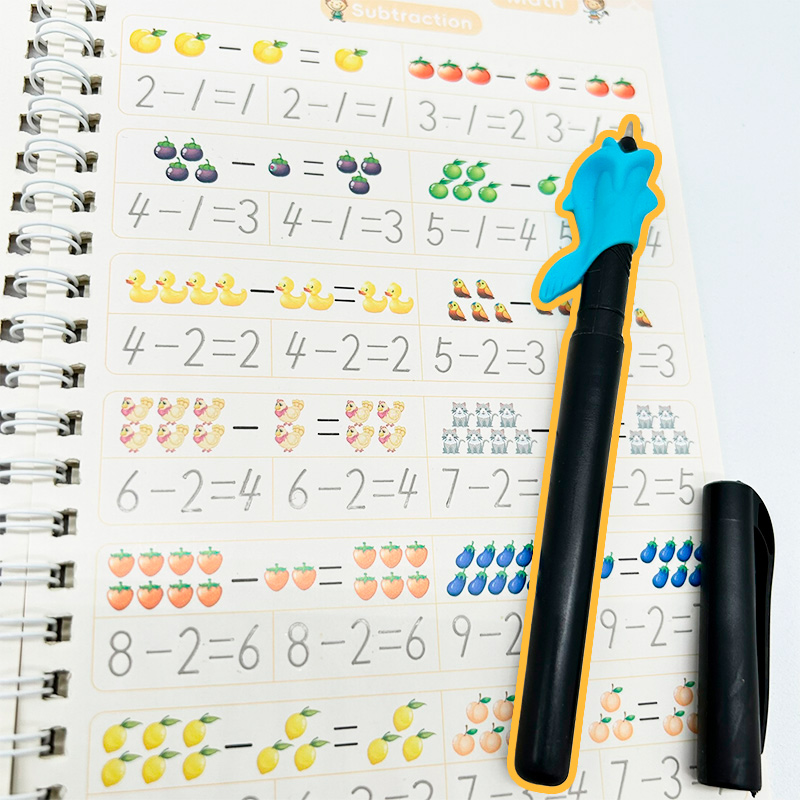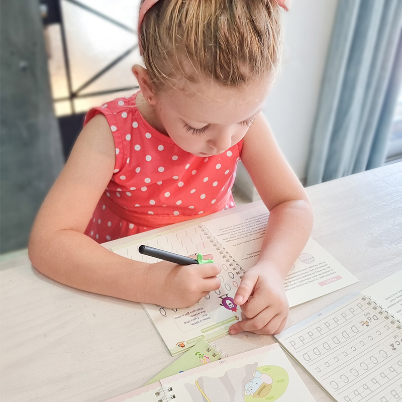 ‣ Incluye: 4 cuadernos de caligrafía (ABC, Números, Matemáticas y Dibujos) + 1 Birome + 10 repuestos para el Birome + Adaptador de Regalo