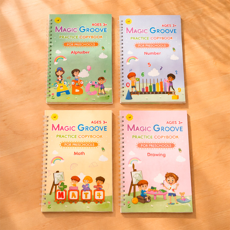 4 Cuadernos reutilizables (ABC, Números, Matemáticas y Dibujos)