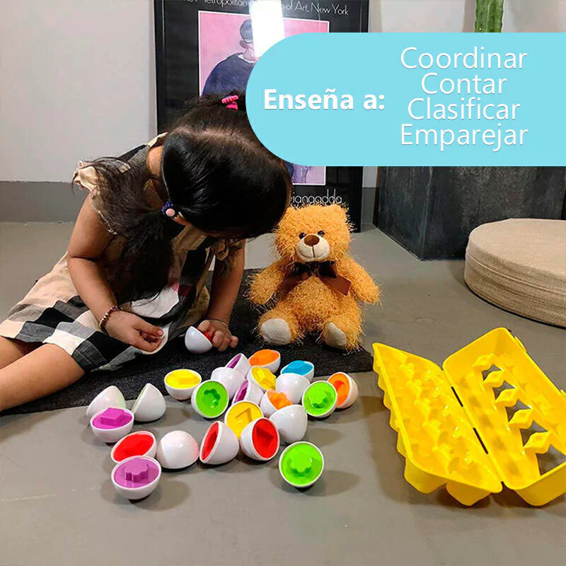 Figuras geometricas: Cada huevito tiene una diferente para que el peque aprenda a nombrarla y reconocerla.