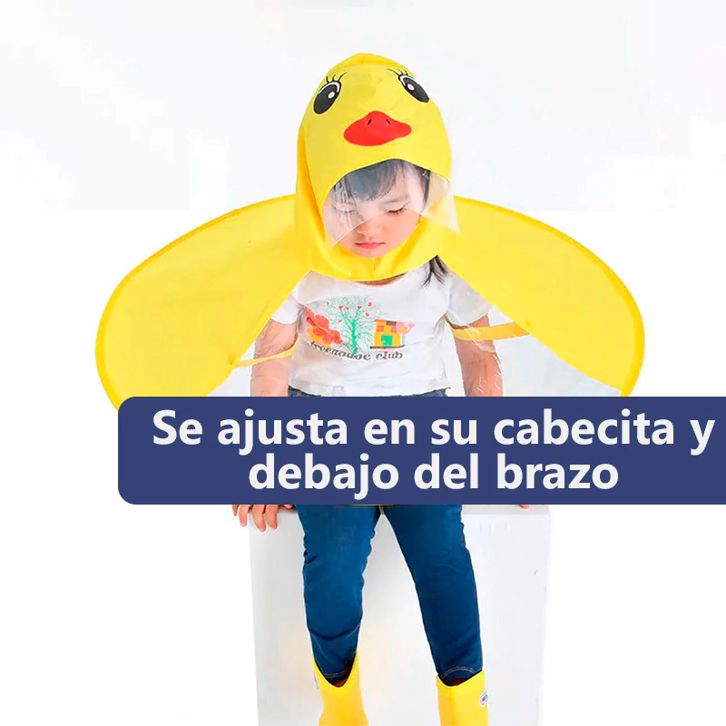 Impermeable plegable con diseño de patito para proteger a los peques de la lluvia.
