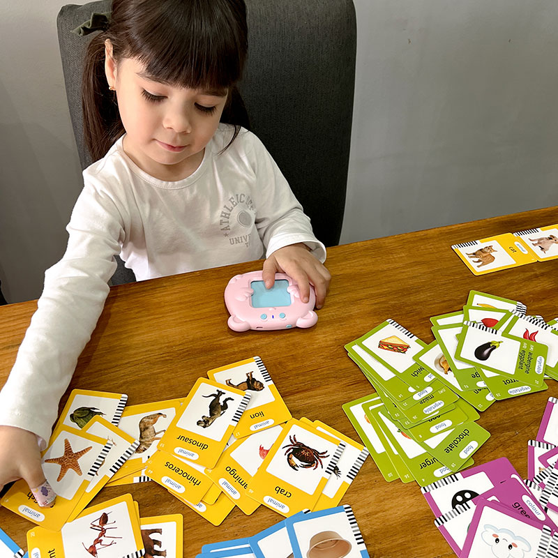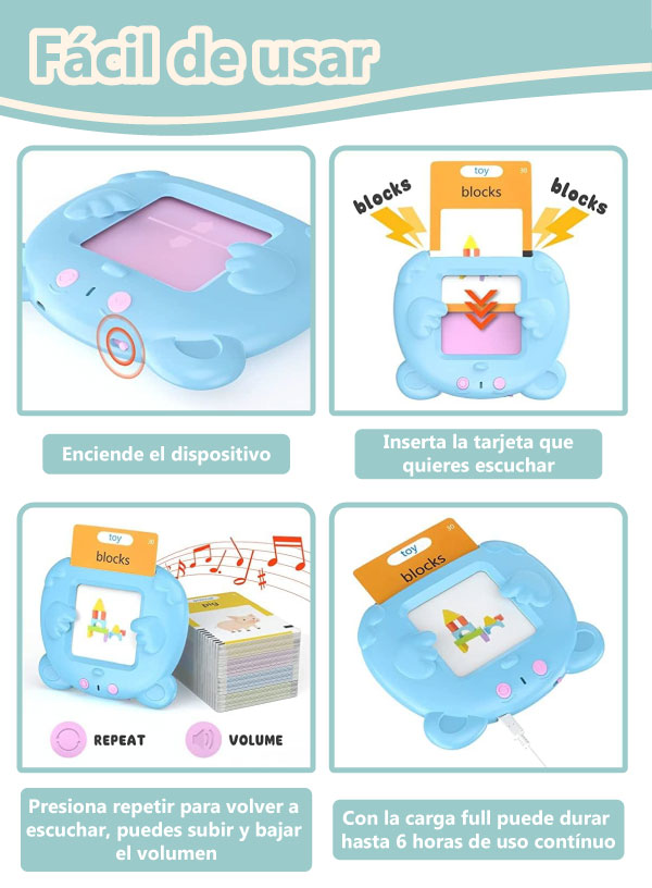 Incluye: 1 lector interactivo, 112 tarjetas doble faz (224 palabras), 1 cable USB.