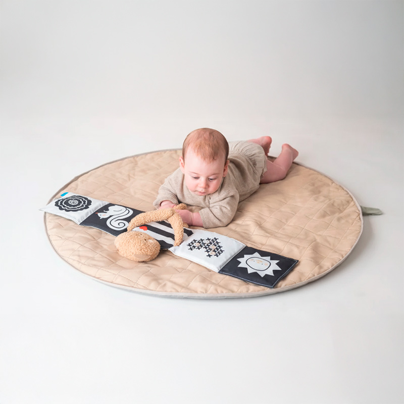 "A mi bebé le encanta. El lado en blanco y negro lo enganchó desde recién nacido, y ahora juega con las solapas y el osito."