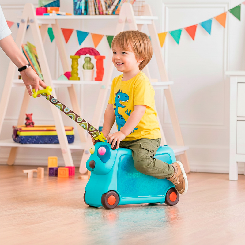 Hermosa maleta con forma de animalito, luces y sonido que los peques pueden montar y jugar.