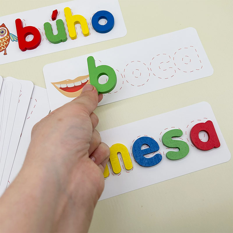 Los chicos pueden autocorregirse al encajar las letras en el lugar correcto.