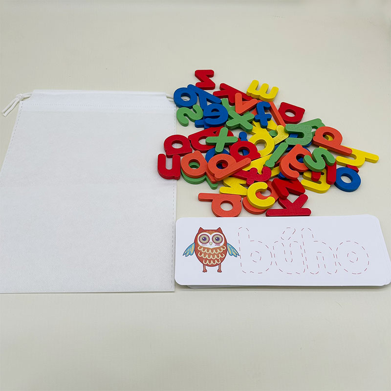 ‣ Incluye: 54 palabras doble cara, 50 letras coloridas, 1 bolsa para guardar y transportar.