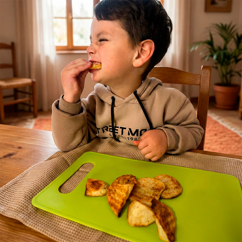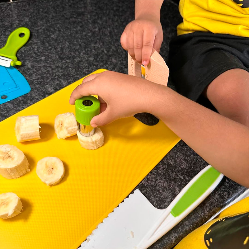 CUCHILLOS APTOS PARA NIÑOS: Con bordes dentados que cortan sin lastimar.